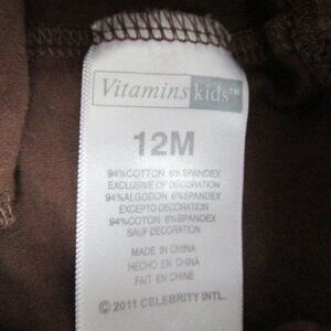 Vitamins Kids Pull On Pants Toddler Boys Size 12M Brown Elastic Jogger Bottoms
