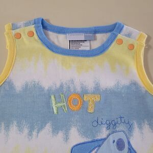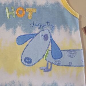 Hot diggity dog! This cute onesie bodysuit has an embroidered & appliqued puppy on its front and his butt on the backside! Easily put on and off with shoulder snaps, and diaper changes are easy with additional snaps at the crotch. Perfect for gifting. NWT