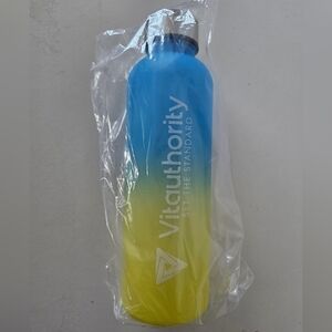 - What it is?: BPA-Free Vitauthority branded bottle. A pgradient colored water bottle from Vitauthority featuring liquid measurements down the side and a silver twist top. Brand new and never used.