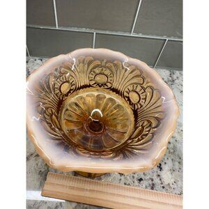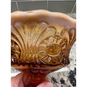 Vitg Fenton Amber Opalescent Glass Compote Candy Dish Cameo Eye & Scroll Design