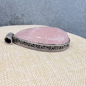 Vitnage Large Teardrop Carved Rose Quartz Sterling Silver Pendant Over 3 Inch