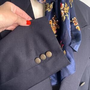 Stunning, classic Vito Rufolo vintage 90s peak lapel double breasted 100% wool blazer jacket! Gorgeous coat of arms buttons. Pockets still stitched. This is a fine, fine coat, friends!