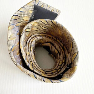 Vitorofolo Silk Tie Gold and Blue Geometric Print