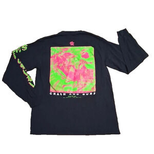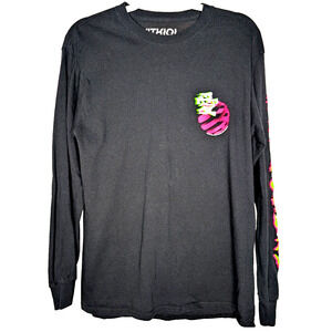 Vitriol Mens Black Skater Streetwear Y2K Goth Emo Neon Graphic Logo Long Sleeve Tee
