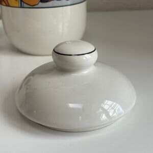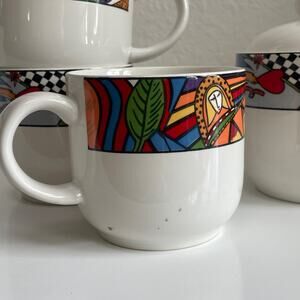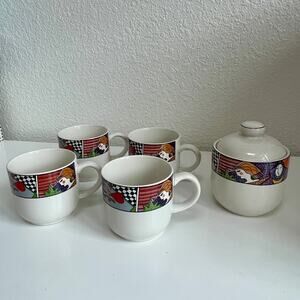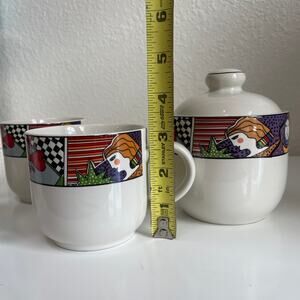 Vitromaster 1991 Metropolitan 4 Coffee Cups, Sugar Bowl & Lid Abstract Art
