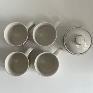 Set of 4 Coffee Cups and a Sugar Bowl with Lid