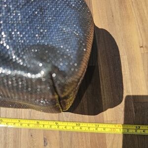 Super cute, kinda dressy pouch bag with the lift up kiss lock which makes it a decent sized wide mouth bag.