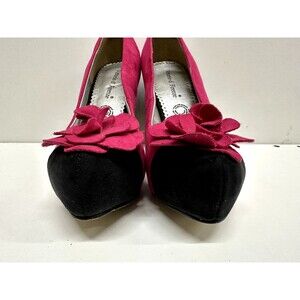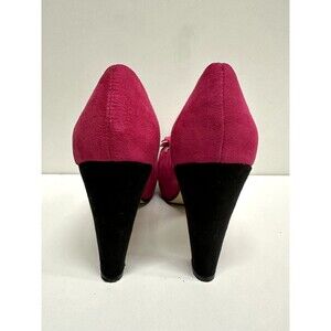 Vittorio D' Firenze women size 7 platform heel shoes pink & black faux suede
