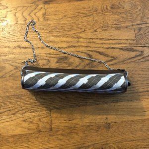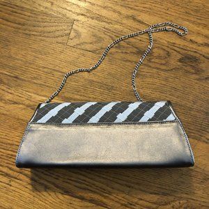 Brand New Designer Clutch Purse! Pewter Metallic Leather with Woven Grosgrain Front made by Vitulli Moda