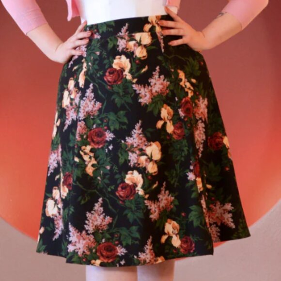 Viva 40s Tulip Skirt in Dark Bella Roses Laura Byrnes Pinup Girl Clothing 4x