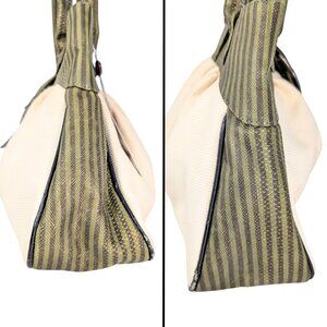 Unique Viva Bags of California canvas shoulder bag with painted green stripe snakeskin handles & trim