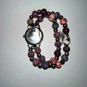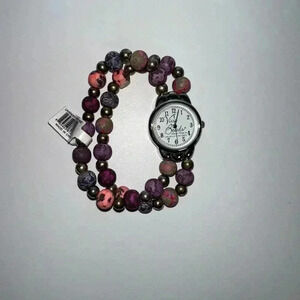 Add a touch of handmade elegance to your wardrobe with the Viva Handmade Clay Beaded Watch. This stunning new and untested watch features a stretch band adorned with lavender floral clay beads, making it a unique and eye-catching accessory.