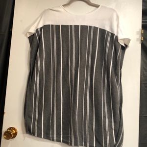 Viva Terra by Indigenous sleeveless sweater vest. V neck gray and white front and gray and white stripe in back. Sides are completely open except right under arm holes. Size is OS. 25” flat lay. Previously owned no visible flaws