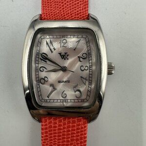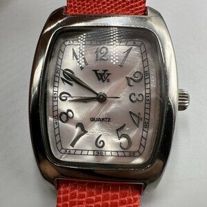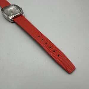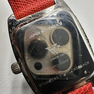 Viva by Pierre Cardin Watch Women Silver Tone Pink Dial Red Band New Battery