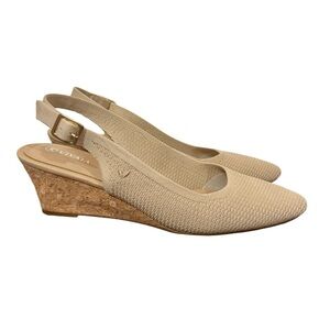 Vivaia Almond Toe Beige Slingback Wedge Tamia in Almond Crochet-Still Full Price