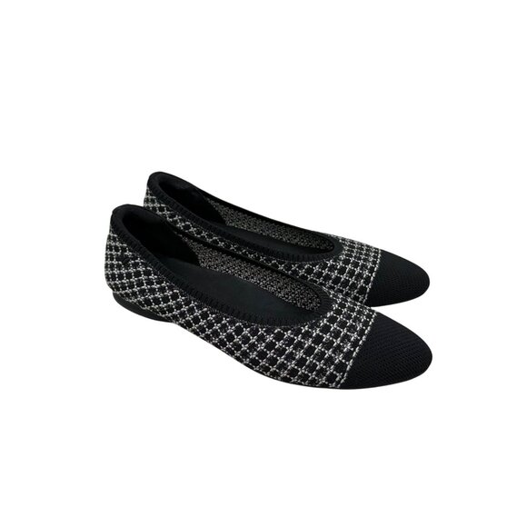Vivaia Almond Toe Black Tweed Knit Slip On Ballet Flats Shoes Womens 39.5 US 8.5