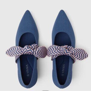Vivaia Aurora Pointed Toe Mary Jane Block Heels Bow Non Slip Blue Office 6.5