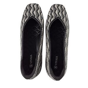 Vivaia Black White Margot Walker Square Toe V Cut Flats 43 US 10 1/2 NEW