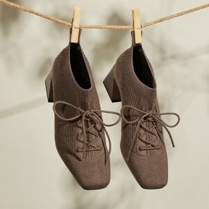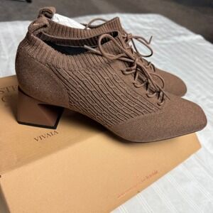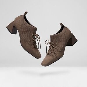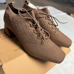 Vivaia Block Heel Knit Ankle Booties Lace Up Square Toe Brown Size 9.5 EUR 41
