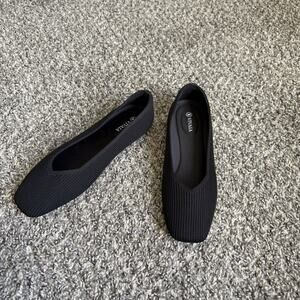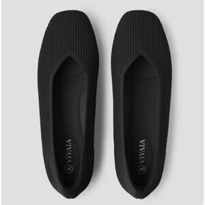 Vivaia Margot 2.0 Square Toe V-Cut Flats Black Knit Shoes US 10 EU 41.5 NEW