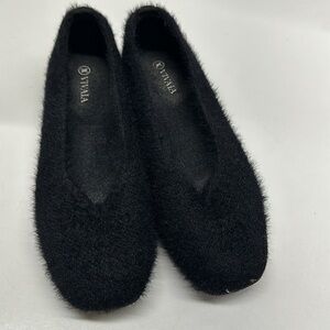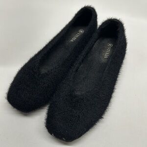 Vivaia Margot Slip On Comfort Flats Faux Mink Fur Fuzzy Square Toe Black 39.5