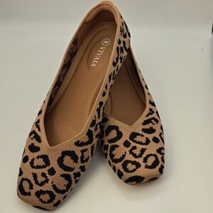 Vivaia Margot size 8 Women's Leopard Print Flat Walker Stretch Knit Ballet Flat