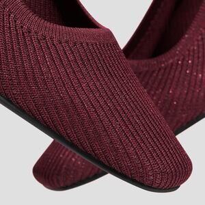 Vivaia Melody Square Toe Chunky Heels Sparkly Burgundy Slip On Pump Shoes Ballet