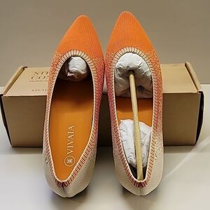 Vivaia Aria Pointed-Toe Ballet Flats. New with box. Step out in style with 's chic orange and cream flats. Perfect for any occasion, these shoes offer both comfort and elegance.