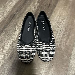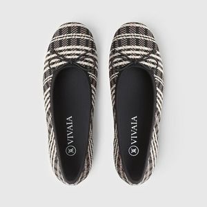 Vivaia Odette Round-Toe Bow Flats Plaid Tan Black 39 NWOB