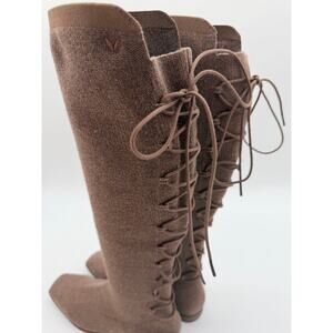 Vivaia Pandora Lace Up Modern Combat Tall Riding Wool Knit Comfort Boots Tan 8