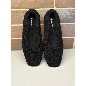 Vivaia Square Flats Shoes Margot Faux Fur Black Women Size 40 US Size 9