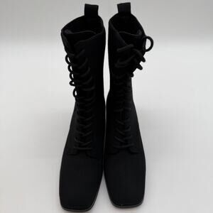 Vivaia Tammy Minimalist Combat Casual Knit Comfort Slim Lace Up Boots Black 7