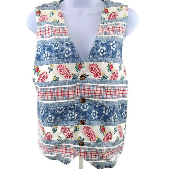 Vivaldi Jeanswear Division of Stuffed Shirts Inc Vintage Women's Paisley, Plaid, Floral Denim Jean Vest