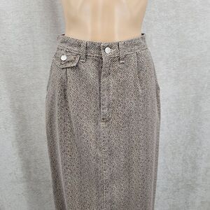 Vivaldi Jeanswear Vintage Classic Brown Herringbone Denim Midi Skirt 80s