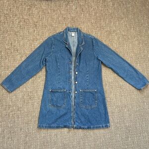Vintage Denim Chore Button Front Long Line Denim Blue Coat
