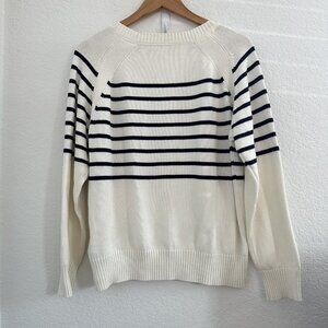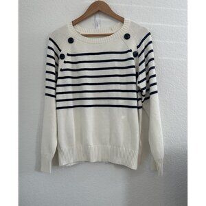 Vivance Sweater Womens Medium Navy White Striped Nautical Pullover Crewneck Buttons