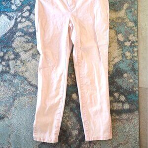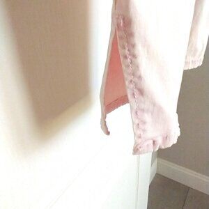 Pretty pink skinny jeans with stretch. Split hem at bottom, faux front pockets. Excellent condition.