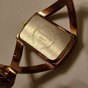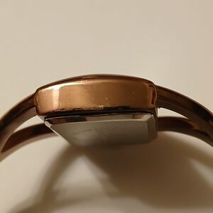 Needs a new battery. There are some nicks on the watch case and band. There are scratches on the crystal, case, and band. Some of the brown and silver tones are wearing off from age and wear. It's a casual preppy style. Please view the photos. Thank you!