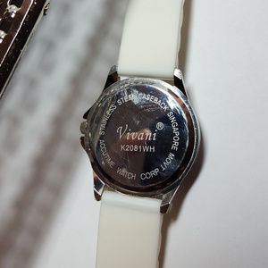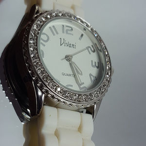 Sparkle Dazzle Watch Rhinestones Crown Brand Vivani White Silicon Wrist Band and is Working Faux Chrono