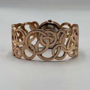 Vivani Watch Women Rose Gold Tone Wide Cuff Statement Band New Battery 7 Inch