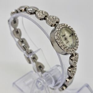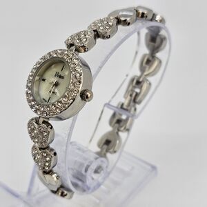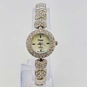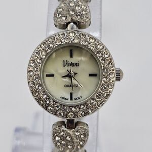 Vivani Women's Watch 22MM Silver Tone MOP Bling Hearts Band 6.75" New Battery