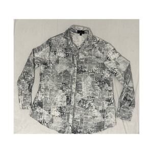 Vive La Vie Woman's Newspaper Print Button Down Size Small