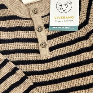 Viverano 100% Cotton Knit Stripy Jumpsuit. Black and tan soft and stretchy knit.
