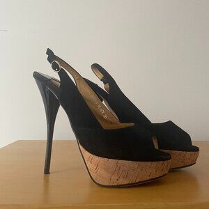 Sandals Opentoe Sandals Slingback Adjustable Sandals Italian Made Sandals Black Suede Sandals Cork Platform Sandals High Heels Sexy High Heels