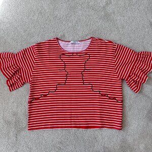 Vivetta Red Stripe Face Embroidery Ruffle Sleeve Tee Top | Made in Italy Size 38