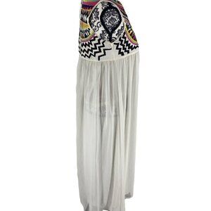 Vivi Party Embroidered Boho Maxi Dress White Sheer Taffeta Skirt Size Medium