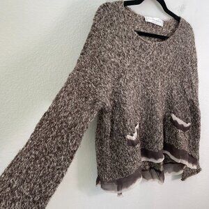 Viviana Uchitel Womens Small 100% Wool Pocket Sweater Long Sleeve Knit Top