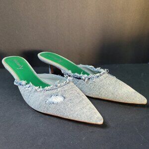 Vivianly Denim Heeled Pointed Toe Mules SZ 10