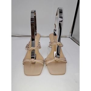 Vivianly Tan Open Toe Strappy Knotted Skinny to Wide Heel Slip On Mules.