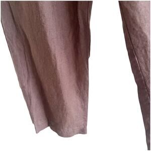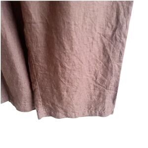 Vivid 100% Linen Brown Cropped Wide Leg Zipper Front Pants Lagenlook Minimalist